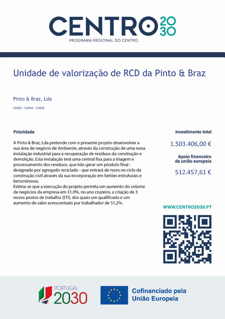 Com o apoio do Programa Regional do Centro 2030, este projeto representa uma aposta estratégica no futuro da construção sustentável. A nova unidade irá potenciar um crescimento de 31,9% no volume de negócios, gerar novos postos de trabalho qualificados e aumentar significativamente o valor acrescentado por trabalhador.